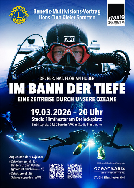 Lions Club Kieler Sprotten ist Veranstalter für diesen Vortrag. Ein Teil der Einnahmen soll dem inka-Schwimmprojekt für Kinder auf dem Ostufer zugute kommen.